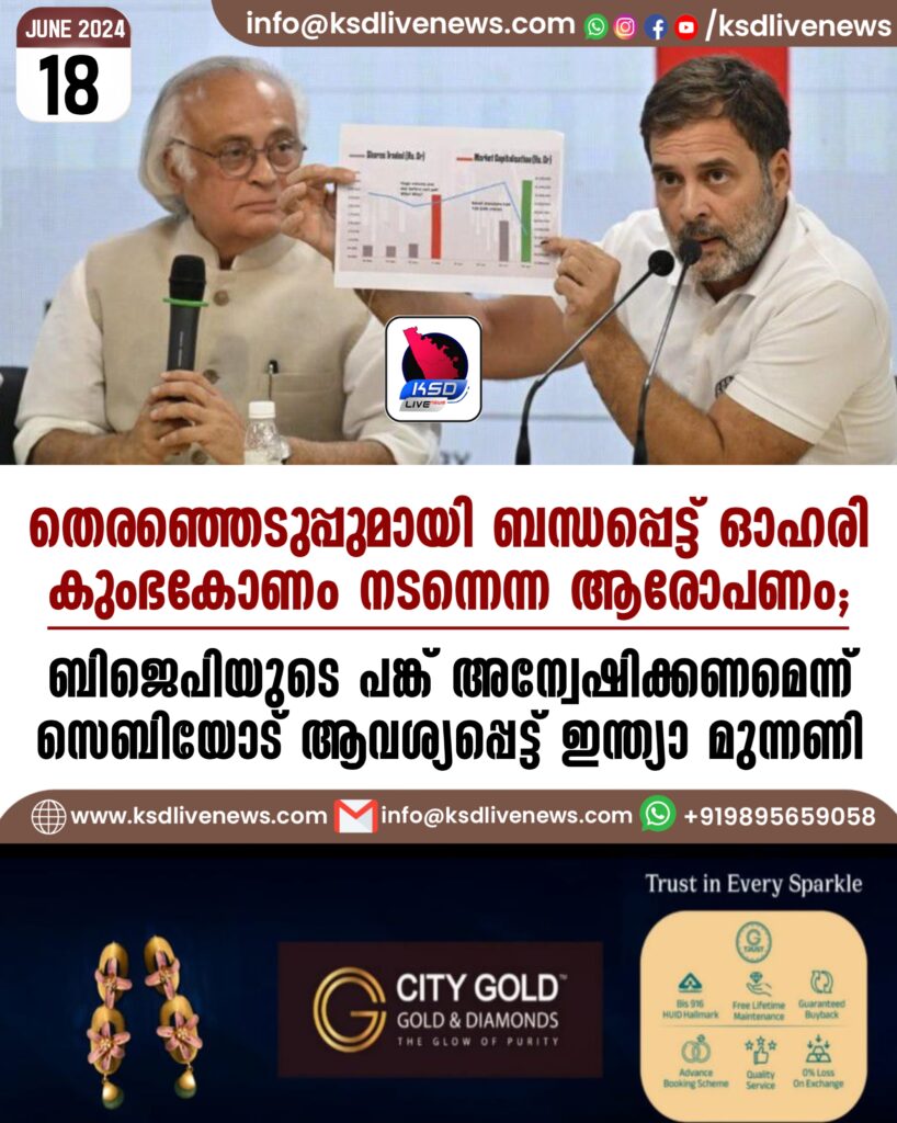 തെരഞ്ഞെടുപ്പുമായി ബന്ധപ്പെട്ട് ഓഹരി കുംഭകോണം നടന്നെന്ന ആരോപണം; ബിജെപിയുടെ പങ്ക് അന്വേഷിക്കണമെന്ന് സെബിയോട് ആവശ്യപ്പെട്ട് ഇന്ത്യാ മുന്നണി