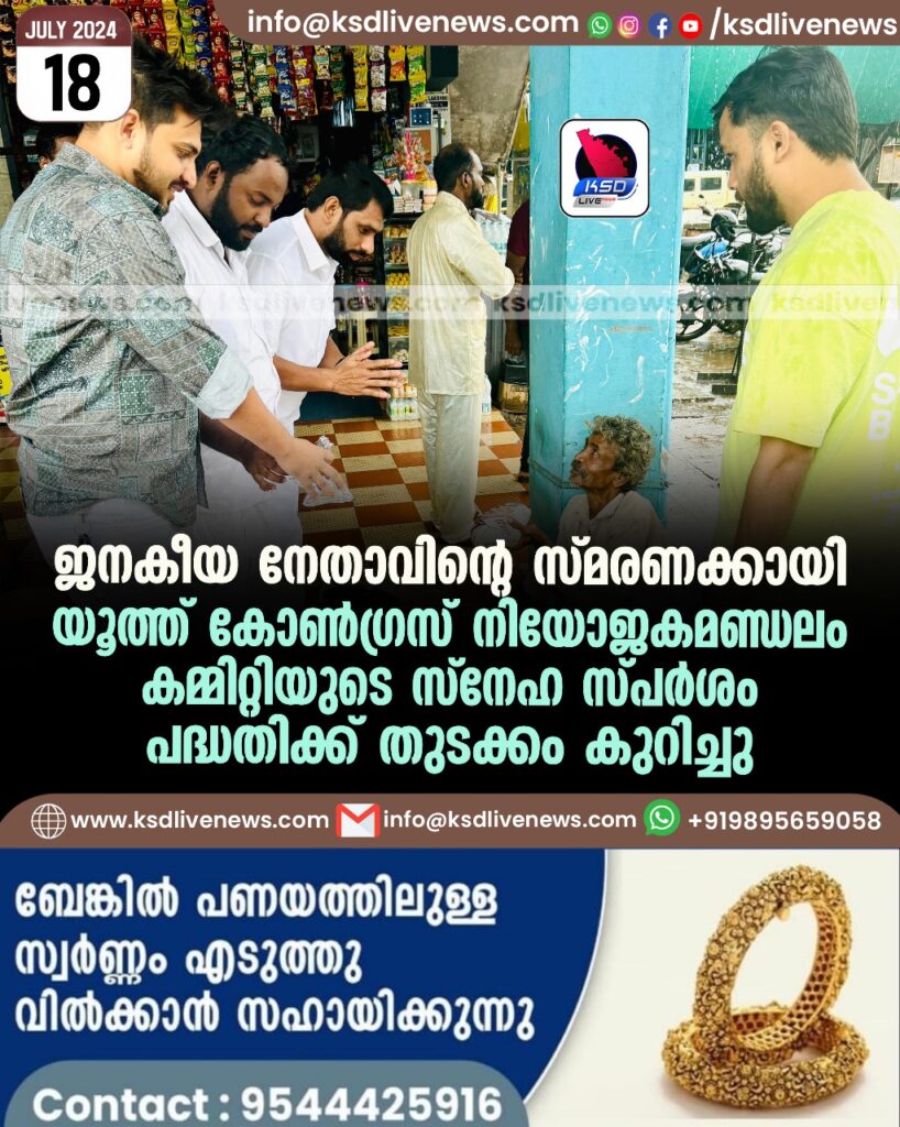 ജനകീയ നേതാവിന്റെ സ്മരണക്കായി യൂത്ത് കോൺഗ്രസ്‌ നിയോജകമണ്ഡലം കമ്മിറ്റിയുടെ സ്നേഹ സ്പർശം പദ്ധതിക്ക് തുടക്കം കുറിച്ചു