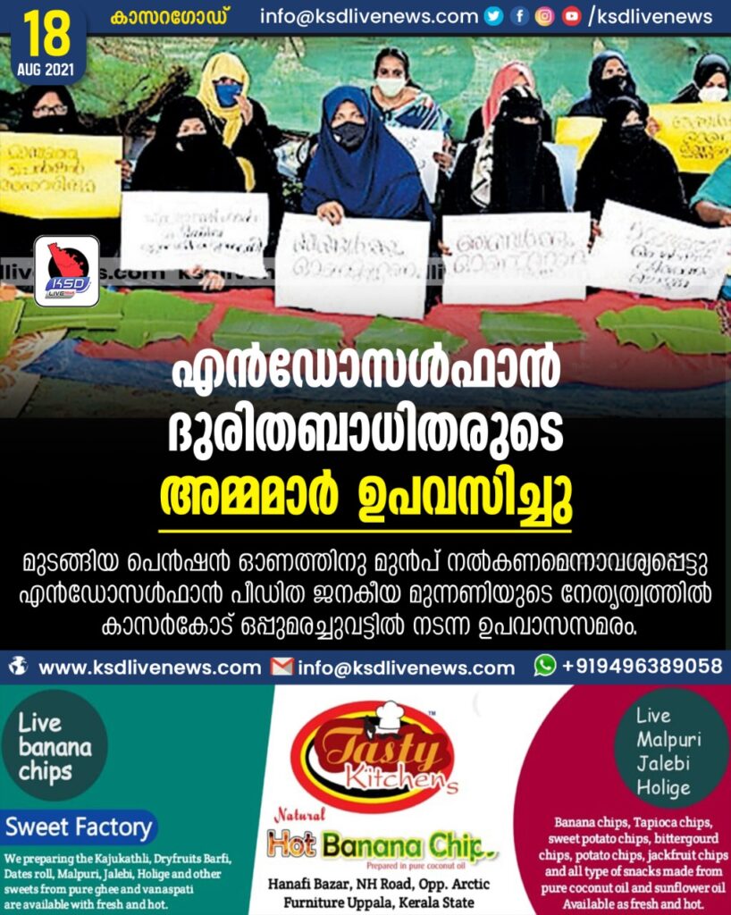 ഒട്ടേറെ ദുരിതബാധിത കുടുംബങ്ങൾ വീടുകളിലും മറ്റു പൊതു ഇടങ്ങളിലും ഉപവാസസമരം നടത്തി. മുനീസ അമ്പലത്തറ അധ്യക്ഷത വഹിച്ചു. സാഹിദ ഇല്യാസ്, കെ.ബി.മുഹമ്മദ് കുഞ്ഞി, ടി.വി.രാജേന്ദ്രൻ, സി.എ.യൂസഫ്, സിസ്റ്റർ ജയ ആന്റോ മംഗലത്ത്, താജുദീൻ പടിഞ്ഞാർ, ലത്തീഫ് കുമ്പള, ശ്രീനാഥ് ശശി, പി.കെ.അബ്ദുല്ല സുബൈർ പടുപ്പ് എന്നിവർ പ്രസംഗിച്ചു. പരിസ്ഥിതി പ്രവർത്തക പ്രസീത കരിവെള്ളൂർ നാരങ്ങാനീര് നൽകി ഉപവാസം അവസാനിപ്പിച്ചു