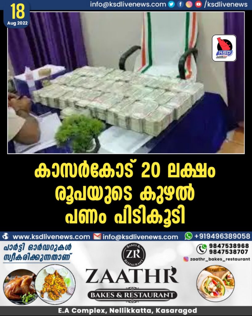കാസര്കോട് 20 ലക്ഷം രൂപയുടെ കുഴല് പണം പിടികൂടി