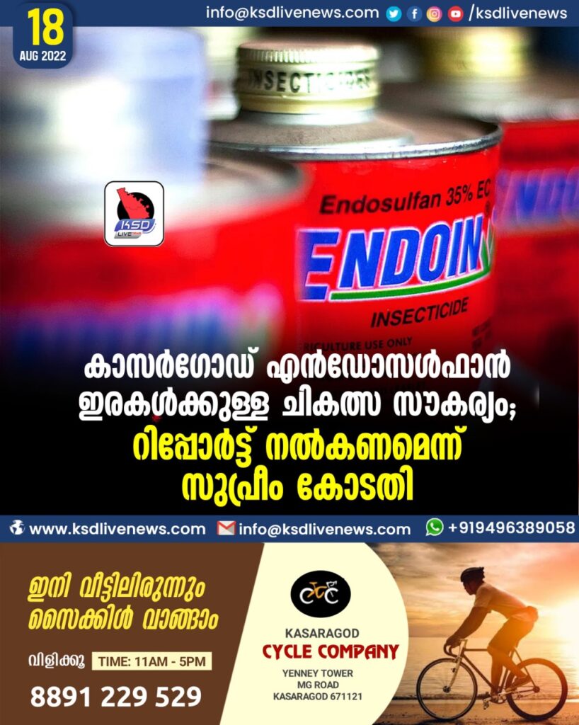 കാസര്ഗോഡ് എന്ഡോസള്ഫാന് ഇരകള്ക്കുള്ള ചികത്സ സൗകര്യം; റിപ്പോര്ട്ട് നല്കണമെന്ന് സുപ്രീം കോടതി