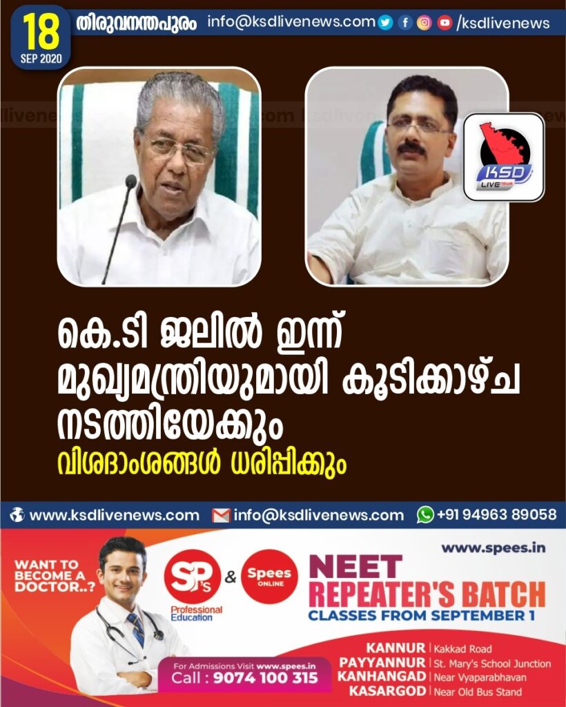 കെ.ടി ജലിൽ ഇന്ന് മുക്ഖ്യമന്ത്രിയുമായി കൂടിക്കാഴ്ച നടത്തിയേക്കും ; വിശദാംശങ്ങൾ ധരിപ്പിക്കും
