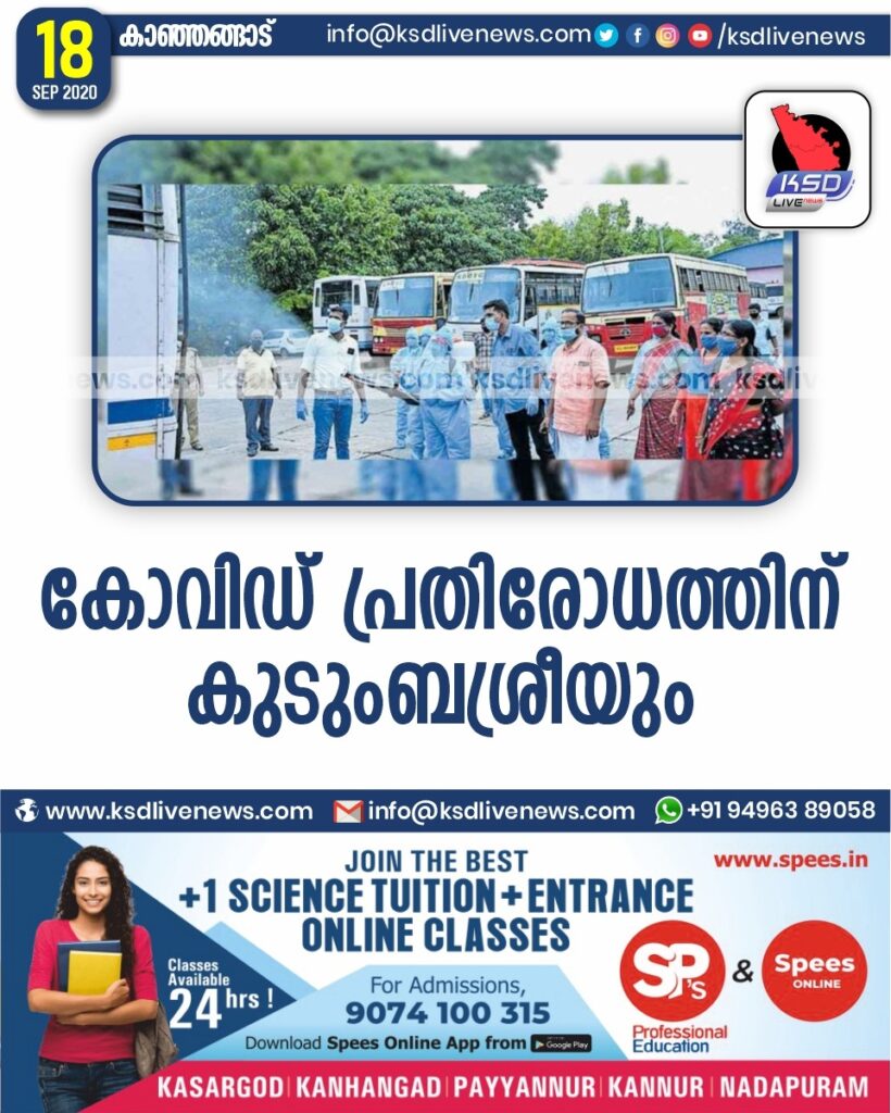 കാഞ്ഞങ്ങാട് – കോവിഡ് പ്രതിരോധത്തിന് കുടുംബശ്രീയും രംഗത്ത് . പൊതു സ്ഥലങ്ങളും മറ്റും അണുവിമുക്തമാക്കാൻ കുടുംബശ്രീയുടെ ഡീപ് ക്ലീനിങ് സർവീസ് പ്രവർത്തനം തുടങ്ങി . കാഞ്ഞങ്ങാട് നഗരസഭ കുടുംബശ്രീ സിഡിഎസിന്റെ കീഴിൽ പരിശീലനം പൂർത്തിയാക്കിയ വനിതകൾ കോവിഡ് പോസിറ്റീവ് റിപ്പോർട്ട് ചെയ്ത കെഎസ്തർടിസി കാഞ്ഞങ്ങാട് സബ് ഡിപ്പോ അണുവിമുക്തമാക്കി പ്രവർത്തനം തുടങ്ങി . നഗരസഭാധ്യക്ഷൻ വി.വി.രമേശൻ ഉപകരണങ്ങൾ നൽകി പദ്ധതി ഉദ്ഘാടനം ചെയ്തു.സമൂഹ വ്യാപനം വർധിച്ചു വരുന്ന സാഹചര്യത്തിൽ വീടുകൾ , ഓഫിസുകൾ , കടകൾ തുടങ്ങിയ സ്ഥലങ്ങൾ ശുചീകരിക്കുന്നതിനാണ് ഇവർക്ക് പരിശീലനം നൽകിയത് .കെ.പ്രവീണ , ഷക്കീന , കെ.വി.സത്യചിത്ര , വി.വി.ഷീല , വിജയശ്രീ , സൗമ്യ രതീഷ് , സുമിത് കുമാരി എന്നിവരാണ് പരിശീലനം പൂർത്തിയാക്കിയത് . സിഡിഎസ് അധ്യക്ഷമാരായ ടി.വി.പ്രേമ , കെ.സുജിനി , കൗൺസിലർ കെ.ലത , പി.രതിക , പി.സുധ എന്നിവർ പരിശീലനത്തിന് നേതൃത്വം നൽകി . ടി.വി. പ്രകാശൻ , വരുൺ ഗോപി , എ.വി.രാജേഷ് എന്നിവരാണ് പരിശീലനം നൽകിയത് .