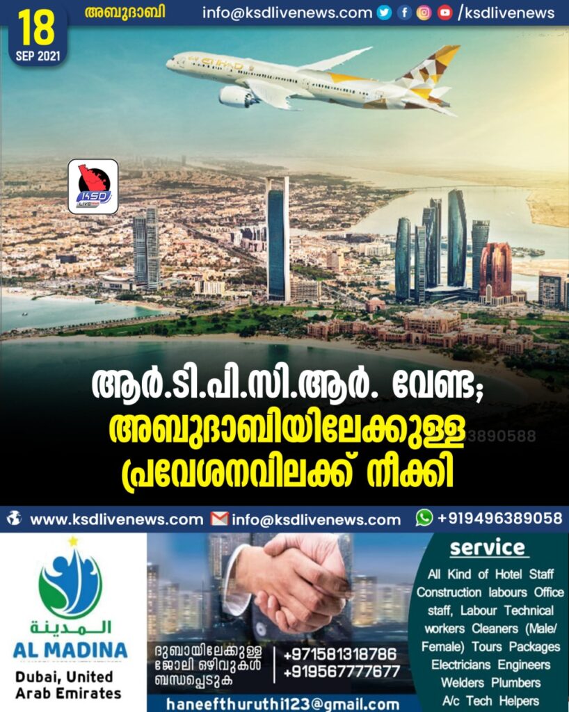 ആർ.ടി.പി.സി.ആർ. വേണ്ട; അബുദാബിയിലേക്കുള്ള പ്രവേശനവിലക്ക് നീക്കി