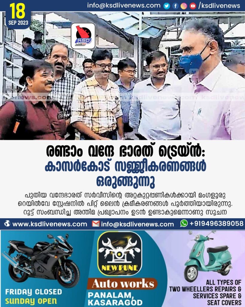 രണ്ടാം വന്ദേഭാരത് ട്രെയ്ൻ: കാസർകോട് സജ്ജീകരണങ്ങൾ ഒരുങ്ങുന്നു
