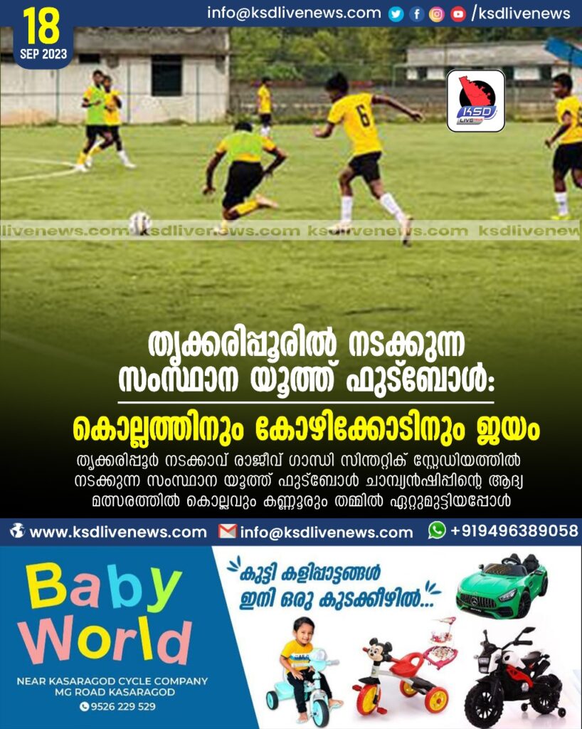 സംസ്ഥാന യൂത്ത് ഫുട്ബോൾ: കൊല്ലത്തിനും കോഴിക്കോടിനും ജയം