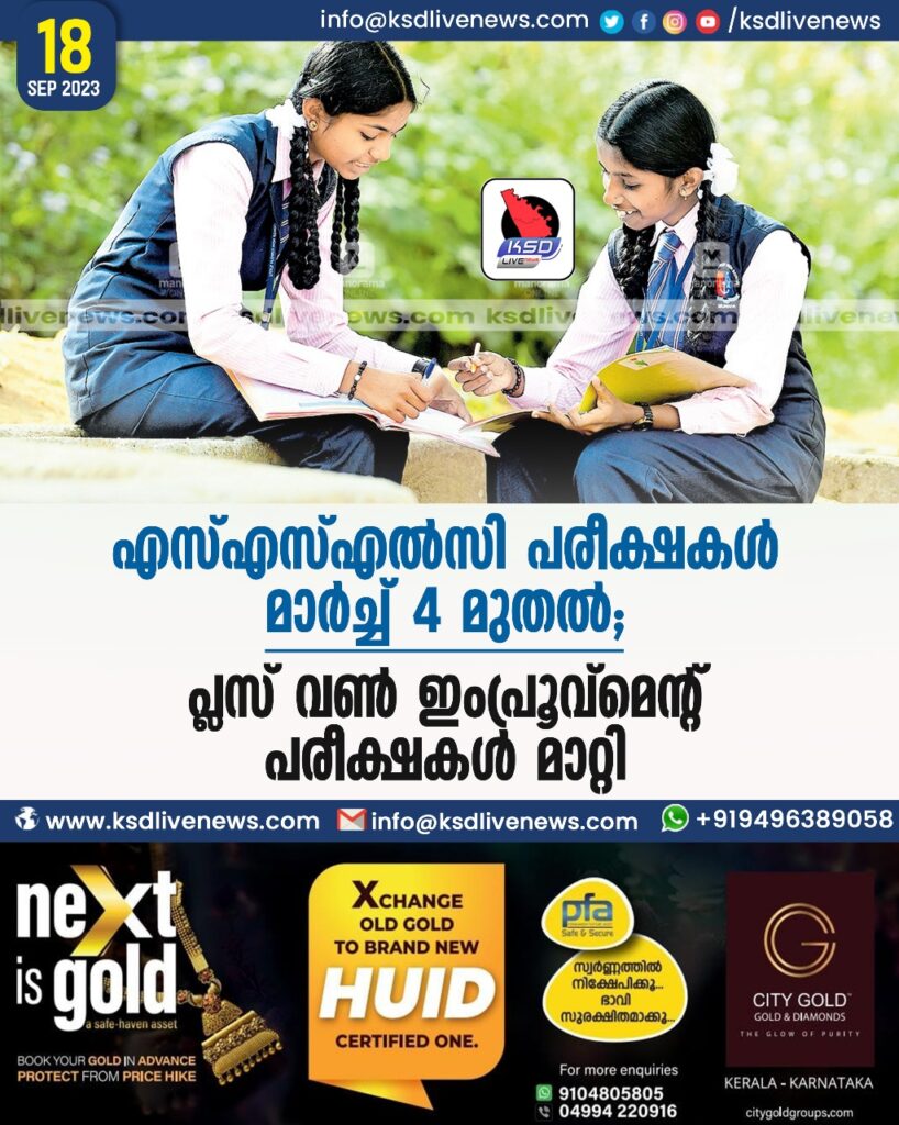 എസ്എസ്എൽസി പരീക്ഷകൾ മാർച്ച് 4 മുതൽ; പ്ലസ് വൺ ഇംപ്രൂവ്മെന്റ് പരീക്ഷകൾ മാറ്റി