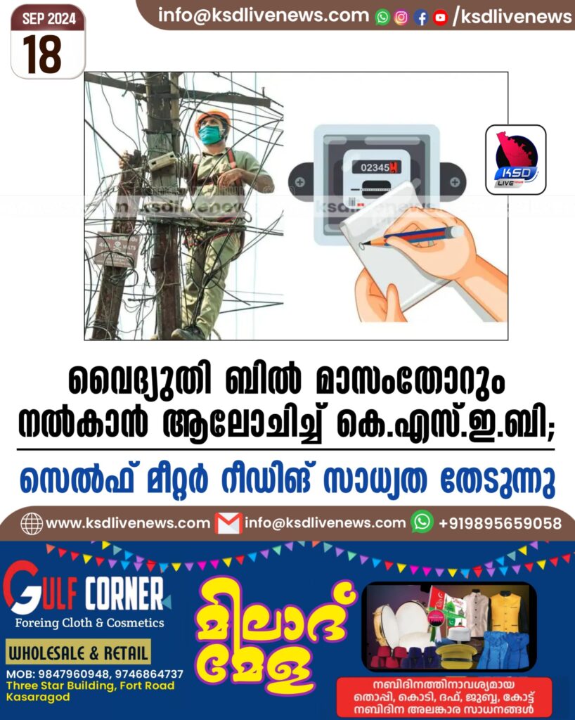 വൈദ്യുതി ബില് മാസംതോറും നല്കാന് ആലോചിച്ച് കെഎസ്ഇബി; സെല്ഫ് മീറ്റര് റീഡിങ് സാധ്യത തേടുന്നു
