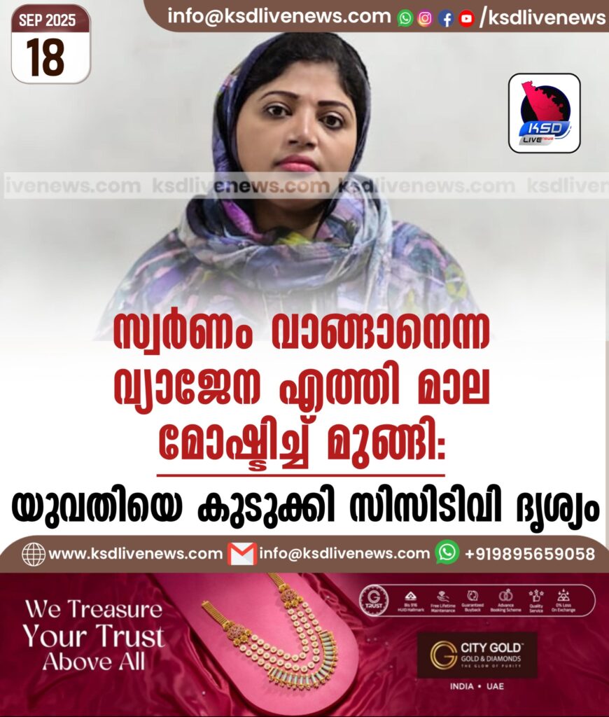 സ്വർണം വാങ്ങാനെന്ന വ്യാജേന എത്തി മാല മോഷ്ടിച്ച് മുങ്ങി; യുവതിയെ കുടുക്കി സിസിടിവി ദൃശ്യം