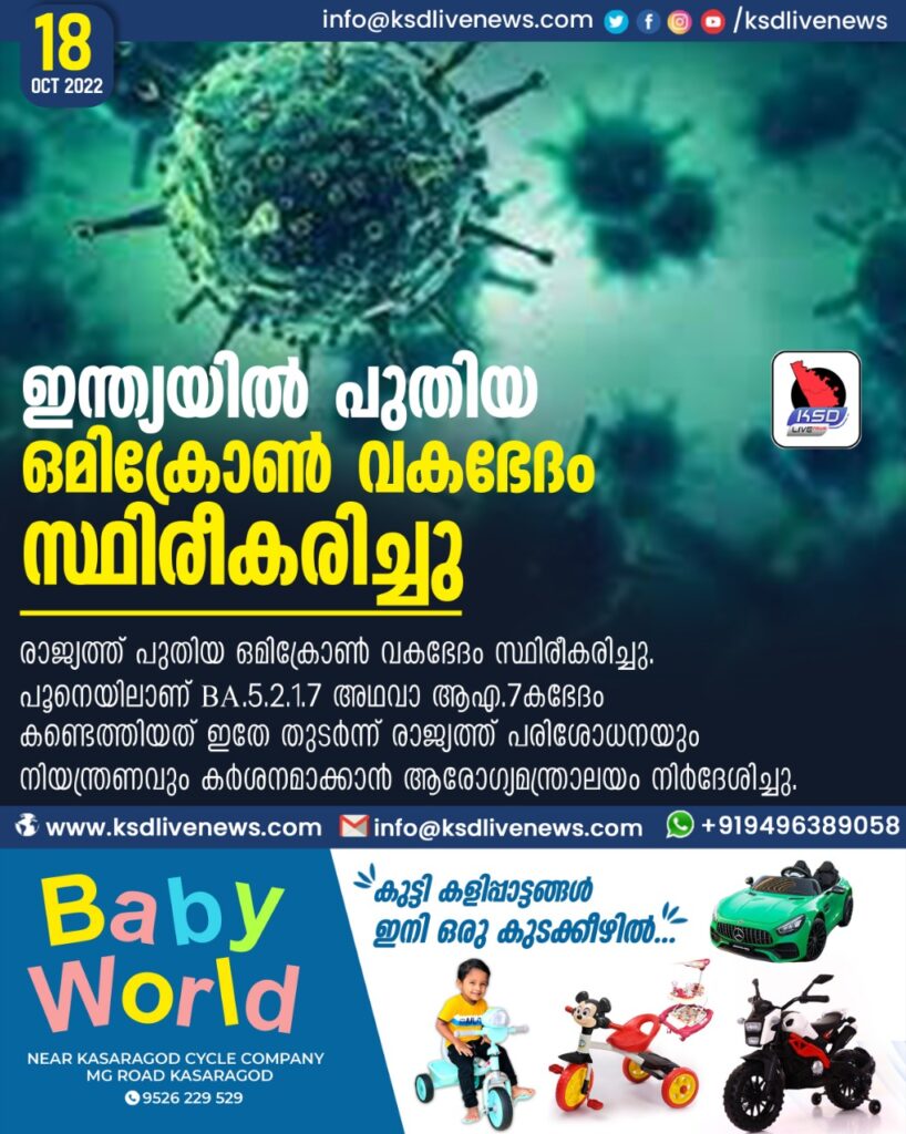 ഇന്ത്യയില് പുതിയ ഒമിക്രോണ് വകഭേദം സ്ഥിരീകരിച്ചു