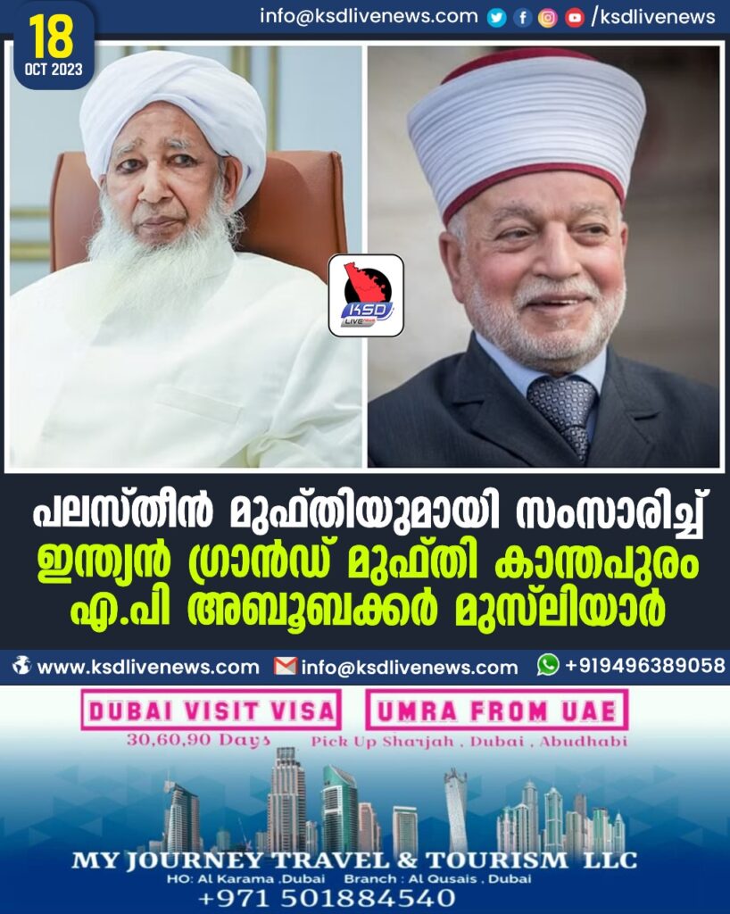 പലസ്തീൻ മുഫ്തിയുമായി സംസാരിച്ച് ഇന്ത്യൻ ഗ്രാൻഡ് മുഫ്തി കാന്തപുരം എ പി അബൂബക്കര് മുസ്ലിയാര്