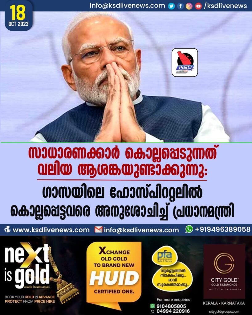 സാധാരണക്കാർ കൊല്ലപ്പെടുന്നത് വലിയ ആശങ്കയുണ്ടാക്കുന്നു’: ഗാസയിലെ ഹോസ്പിററ്റലിൽ കൊല്ലപ്പെട്ടവരെ അനുശോചിച്ച് പ്രധാനമന്ത്രി
