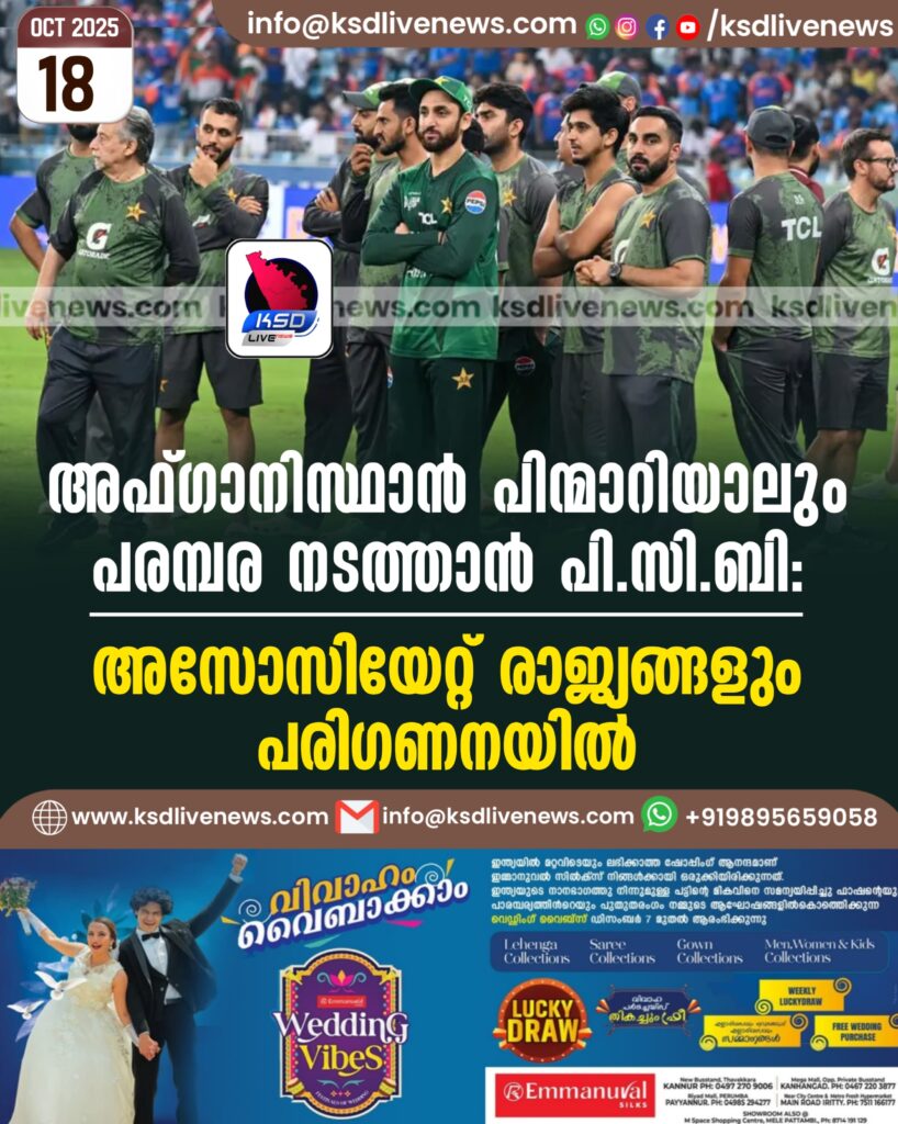 അഫ്ഗാനിസ്ഥാൻ പിന്മാറിയാലും പരമ്പര നടത്താൻ പി.സി.ബി: അസോസിയേറ്റ് രാജ്യങ്ങളും പരിഗണനയിൽ