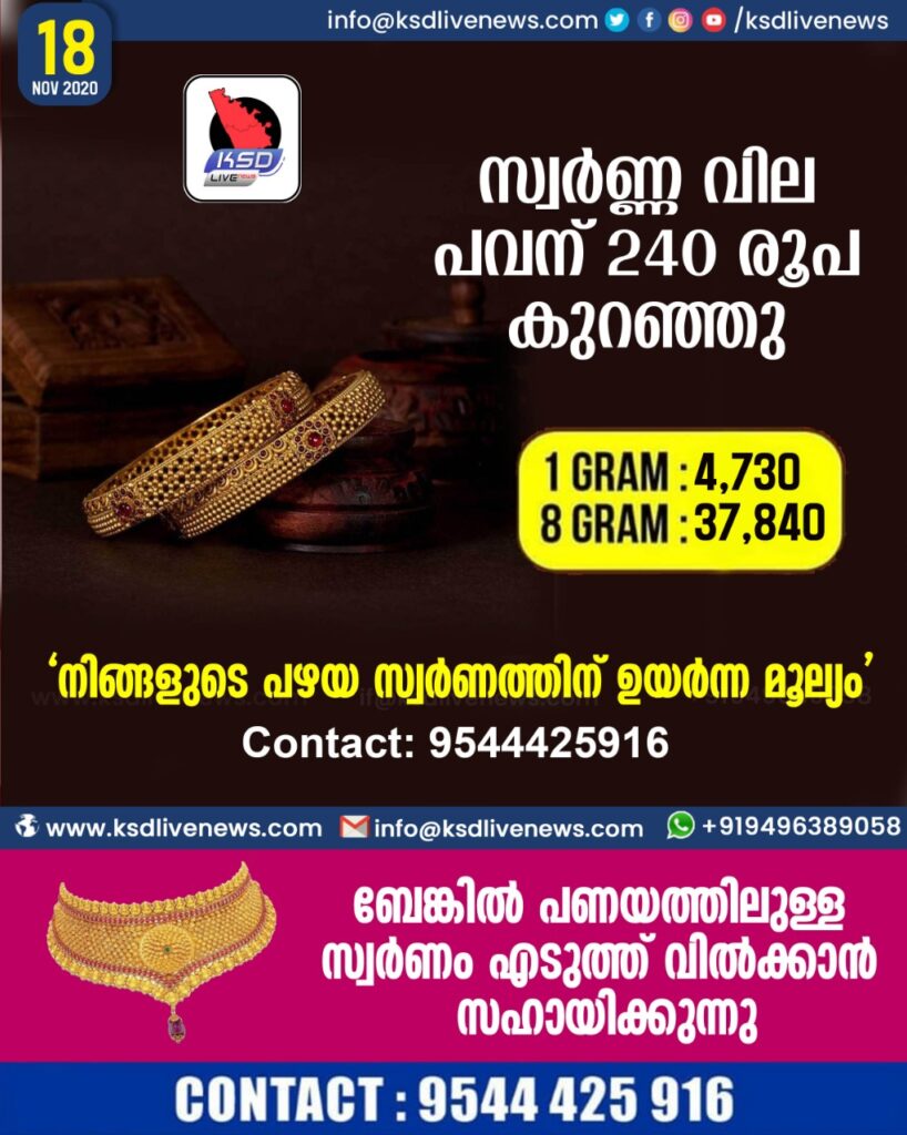 സ്വര്ണവില പവന് 240 രൂപ കുറഞ്ഞ് 37,840 യായി