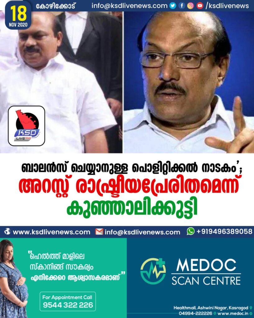 ബാലൻസ് ചെയ്യാനുള്ള പൊളിറ്റിക്കൽ നാടകം ‘ ; അറസ്റ്റ് രാഷ്ട്രീയപ്രേരിതമെന്ന് കുഞ്ഞാലിക്കുട്ടി