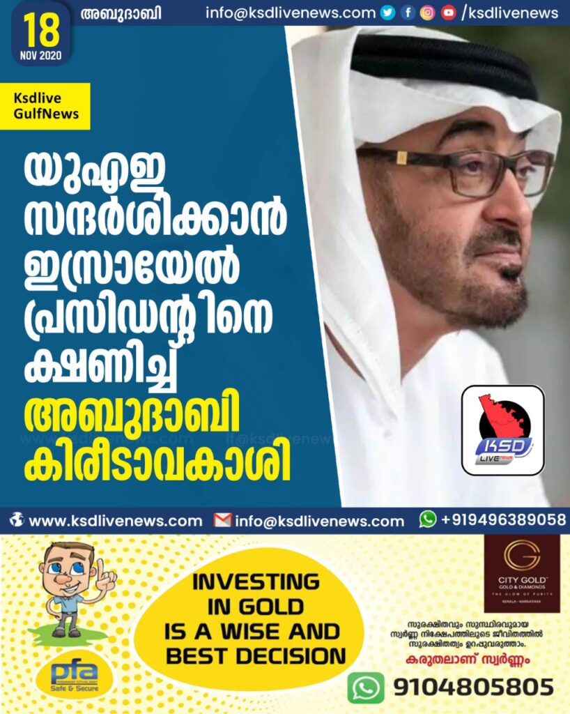യുഎഇ സന്ദർശിക്കാൻ ഇസ്രായേൽ പ്രസിഡന്റിനെ ക്ഷണിച്ച് അബുദാബി കിരീടാവകാശി