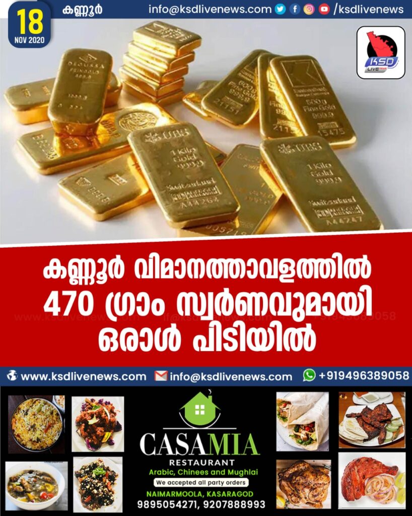 കണ്ണൂർ വിമാനത്താവളത്തിൽ 470 ഗ്രാം സ്വർണവുമായി ഒരാൾ പിടിയിൽ