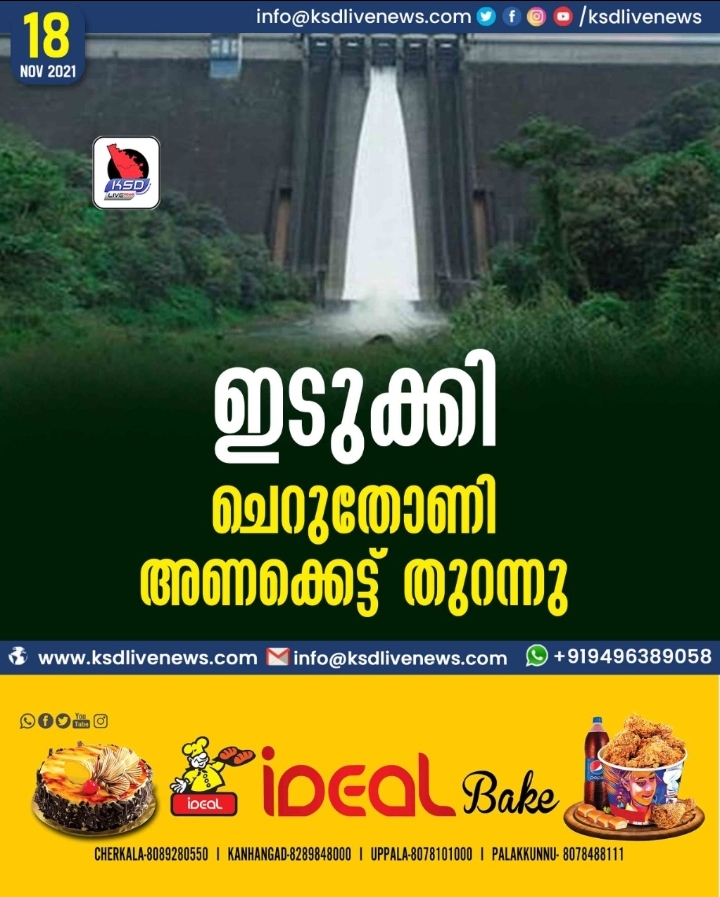 ഇടുക്കി ചെറുതോണി അണക്കെട്ട് തുറന്നു