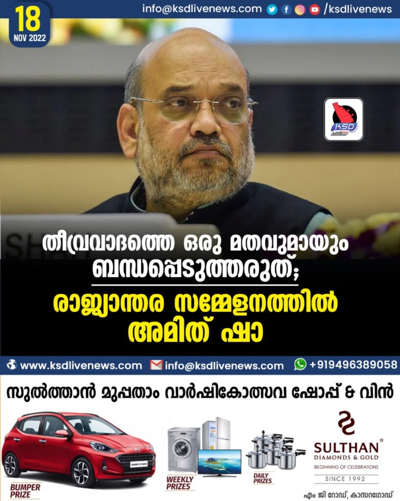 ‘ആഗോള സമാധാനത്തിനും സുരക്ഷയ്ക്കും ഗുരുതര ഭീഷണിയാണ് തീവ്രവാദം. എന്നാല്‍, തീവ്രവാദത്തിന് സാമ്പത്തിക സഹായം നല്‍കുന്നത് തീവ്രവാദത്തിന്റെ ലക്ഷ്യവും മാര്‍ഗവും കണ്ടെത്തുന്നതിന് സഹായമാവുന്നു. തീവ്രവാദത്തിന് സാമ്പത്തിക സഹായം നല്‍കുന്നത് ലോകരാജ്യങ്ങളുടെ സമ്പദ്ഘടനയെ ദുര്‍ബലപ്പെടുത്തുന്നു. തീവ്രവാദത്തെ ഏതെങ്കിലും മതവുമായോ ദേശീയതയുമായോ വിഭാഗങ്ങളുമായോ ചേര്‍ത്തുപറയാന്‍ കഴിയില്ല, പാടില്ല’- അമിത് ഷാ പറഞ്ഞു