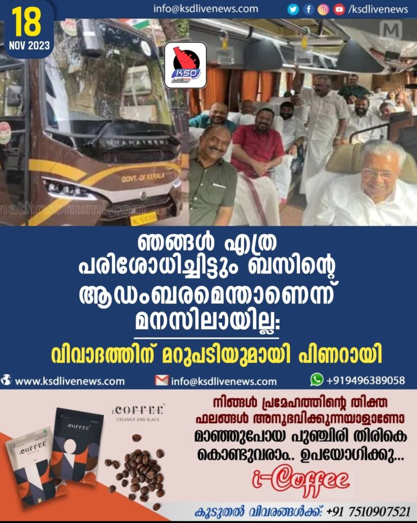 ഞങ്ങള് എത്ര പരിശോധിച്ചിട്ടും ബസിന്റെ ആഡംബരമെന്താണെന്ന് മനസിലായില്ല-വിവാദത്തിന് മറുപടിയുമായി പിണറായി