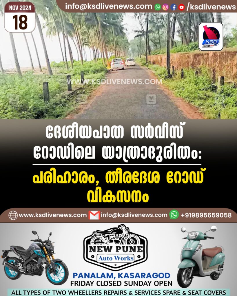 ദേശീയപാത സർവീസ് റോഡിലെ യാത്രാദുരിതം: പരിഹാരം, തീരദേശ റോഡ് വികസനം