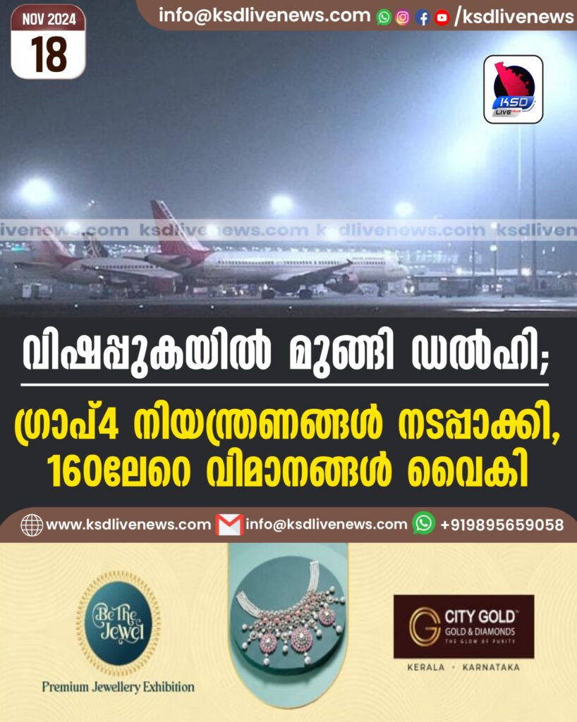 വിഷപ്പുകയിൽ മുങ്ങി ഡൽഹി; ഗ്രാപ്4 നിയന്ത്രണങ്ങൾ നടപ്പാക്കി, 160ലേറെ വിമാനങ്ങൾ വൈകി