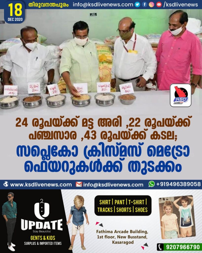 24 രൂപയ്ക്ക് മട്ട അരി , 22 രൂപയ്ക്ക് പഞ്ചസാര , 43 രൂപയ്ക്ക് കടല ; സപ്ലെകോ ക്രിസ്മസ് മെട്രോ ഫെയറുകൾക്ക് തുടക്കം