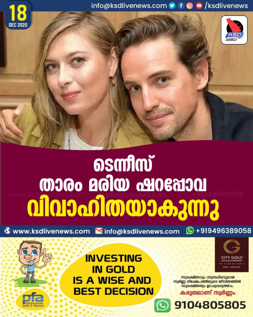ടെന്നീസ് താരം മരിയ ഷറപ്പോവ വിവാഹിതയാകുന്നു