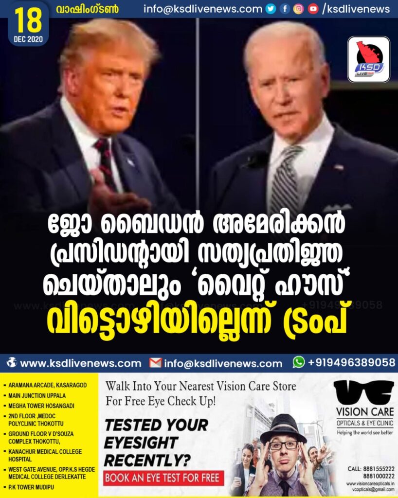 ജോ ബൈഡൻ അമേരിക്കൻ പ്രസിഡന്റായി സത്യപ്രതിജ്ഞ ചെയ്താലും “വൈറ്റ് ഹൗസ്” വിട്ടൊഴിയില്ലെന്ന് ട്രംപ്