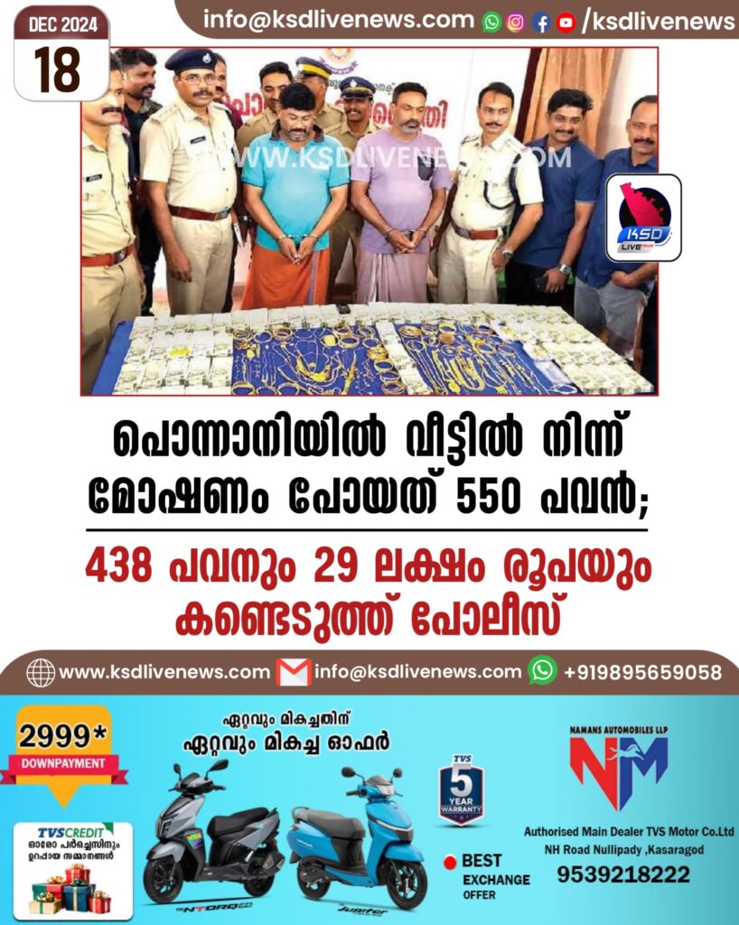പൊന്നാനിയിൽ വീട്ടിൽനിന്ന് മോഷണംപോയത് 550 പവൻ; 438 പവനും 29 ലക്ഷം രൂപയും കണ്ടെടുത്ത് പോലീസ്