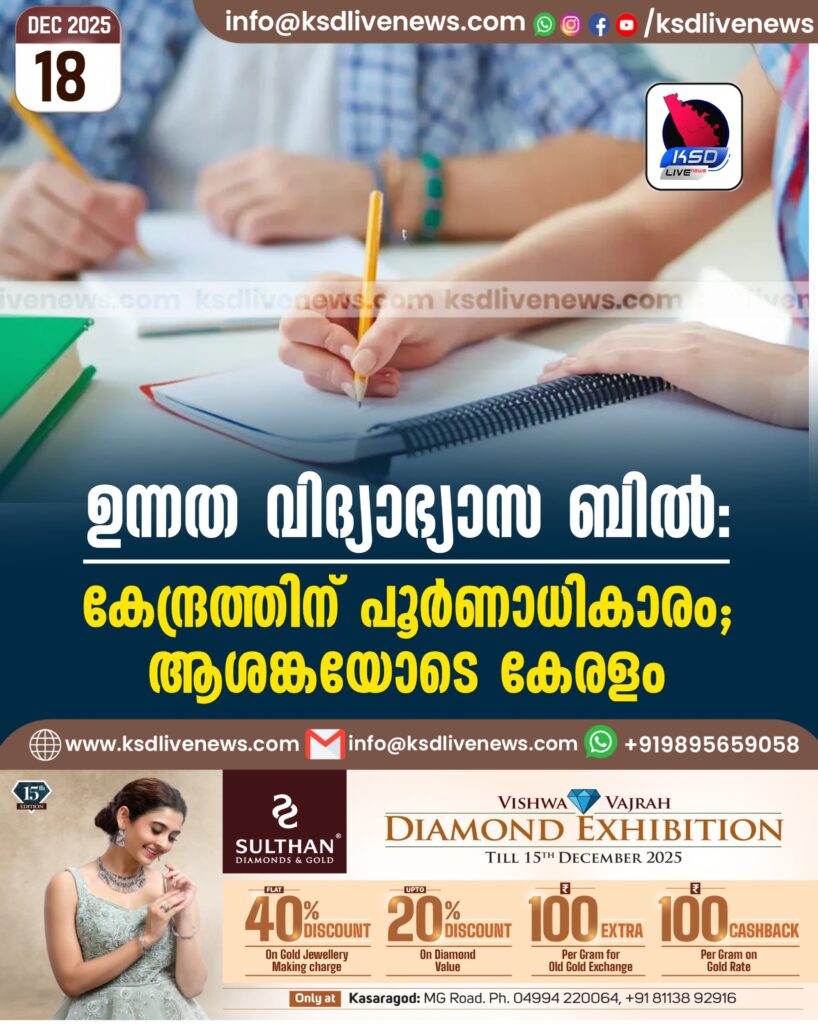 ഉന്നത വിദ്യാഭ്യാസ ബിൽ: കേന്ദ്രത്തിന് പൂർണാധികാരം; ആശങ്കയോടെ കേരളം