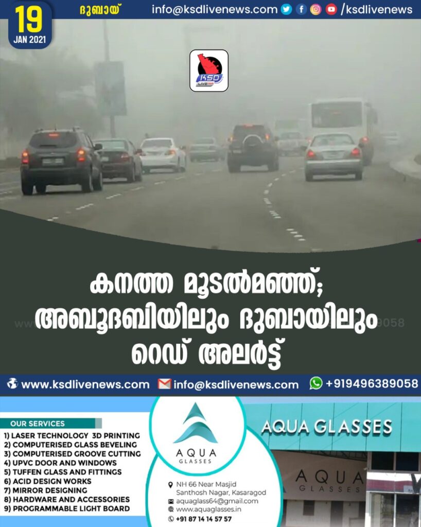കനത്ത മൂടൽമഞ്ഞ് ; അബൂദബിയിലും ദുബായിലും റെഡ് അലർട്ട്