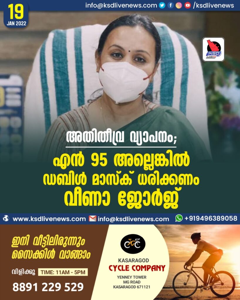 അതിതീവ്ര വ്യാപനം; എന് 95 അല്ലെങ്കില് ഡബിള് മാസ്ക് ധരിക്കണം- വീണാ ജോര്ജ്