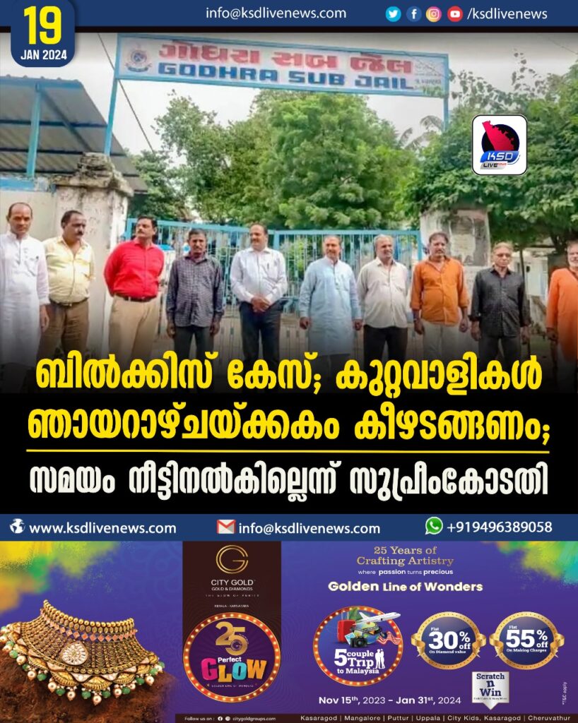 ബില്ക്കിസ് കേസ്; കുറ്റവാളികള് ഞായറാഴ്ചയ്ക്കകം കീഴടങ്ങണം; സമയം നീട്ടിനല്കില്ലെന്ന് സുപ്രീംകോടതി