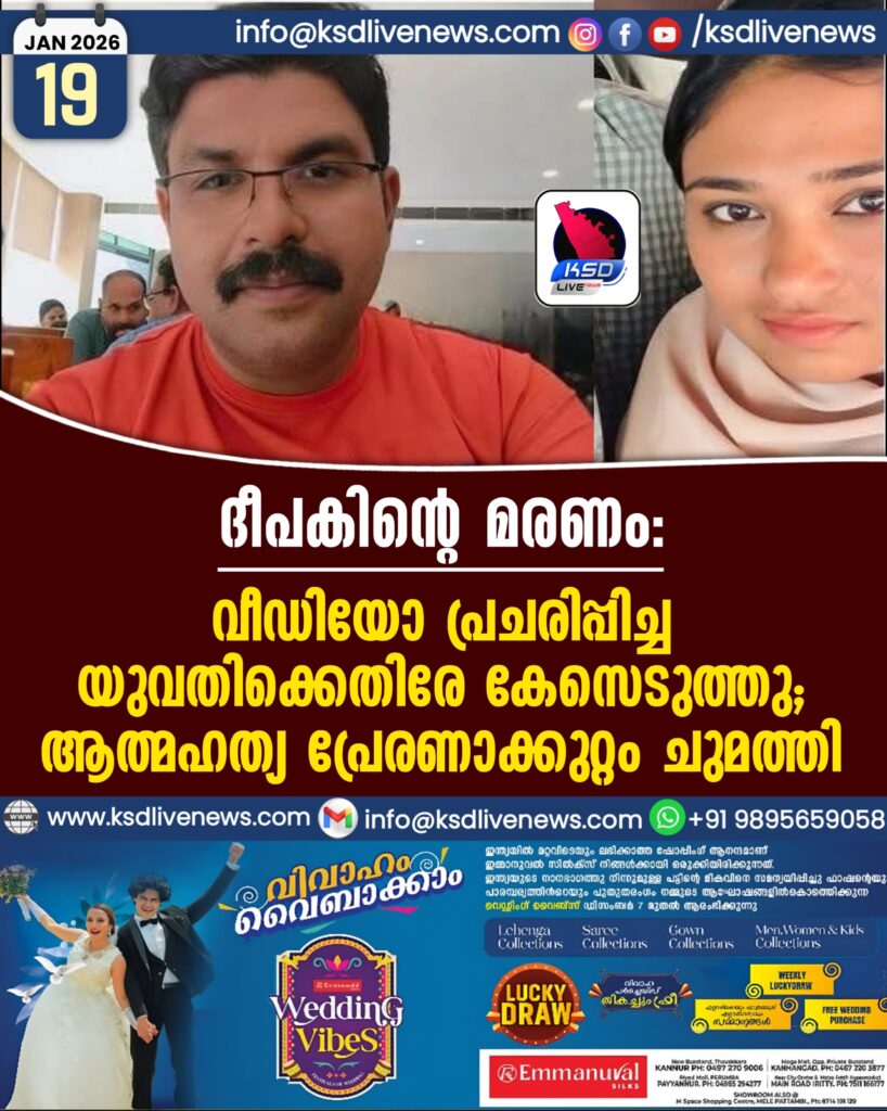 ദീപകിന്റെ മരണം: വീഡിയോ പ്രചരിപ്പിച്ച യുവതിക്കെതിരേ കേസെടുത്തു; ആത്മഹത്യ പ്രേരണാക്കുറ്റം ചുമത്തി
