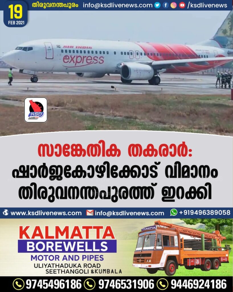 സാങ്കേതിക തകരാര്: ഷാര്ജ-കോഴിക്കോട് വിമാനം തിരുവനന്തപുരത്ത് ഇറക്കി