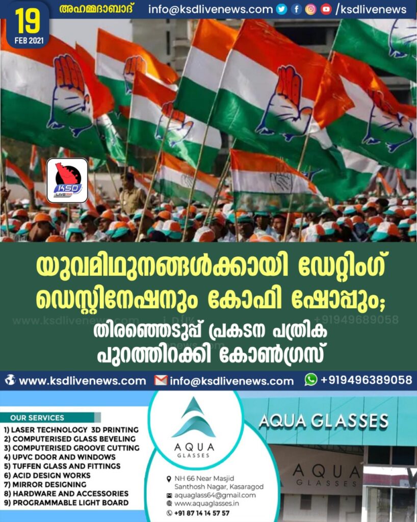 യുവമിഥുനങ്ങൾക്കായി ഡേറ്റിംഗ് ഡെസ്റ്റിനേഷനും കോഫി ഷോപ്പും ; തിരഞ്ഞെടുപ്പ് പ്രകടന പത്രിക പുറത്തിറക്കി കോൺഗ്രസ്