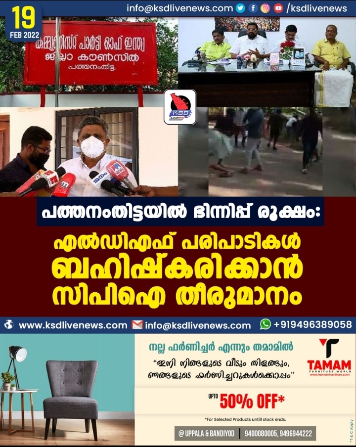 പത്തനംതിട്ടയില്‍ ഭിന്നിപ്പ് രൂക്ഷം: എല്‍ഡിഎഫ് പരിപാടികള്‍ ബഹിഷ്കരിക്കാന്‍ സിപിഐ തീരുമാനം
