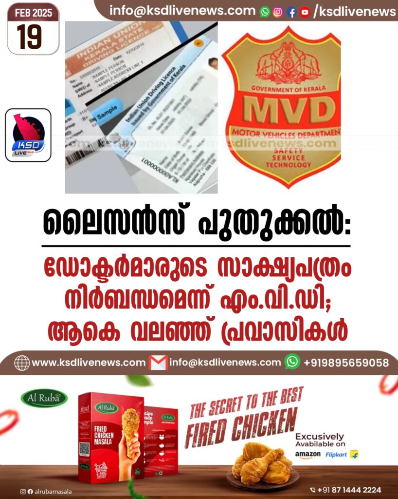 ലൈസൻസ് പുതുക്കൽ; ഡോക്ടർമാരുടെ സാക്ഷ്യപത്രം നിർബന്ധമെന്ന് എം.വി.ഡി, ആകെ വലഞ്ഞ് പ്രവാസികൾ