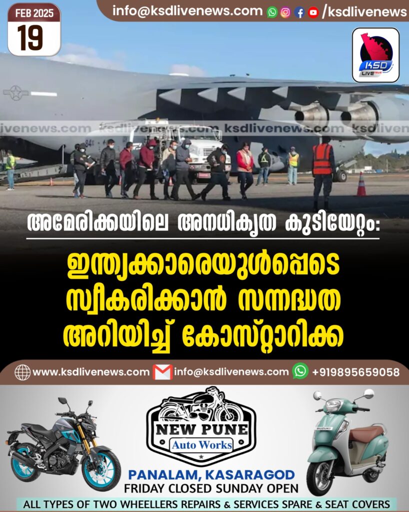 പനാമയ്ക്കും ഗ്വാട്ടിമലയ്ക്കും പിന്നാലെയാണ് കോസ്റ്റാറിക്കയും അനധികൃത കുടിയേറ്റക്കാർക്ക് താത്കാലിക അഭയമൊരുക്കാൻ സന്നദ്ധത അറിയിച്ചത്. ഇതുപ്രകാരം ഇന്ത്യയില് നിന്നും മധ്യേഷ്യൻ രാജ്യങ്ങളില് നിന്നുമുള്ള 200 കുടിയേറ്റക്കാരെ യാത്രാ വിമാനത്തില് ബുധനാഴ്ച കോസ്റ്റാറിക്കയില് എത്തിക്കും.