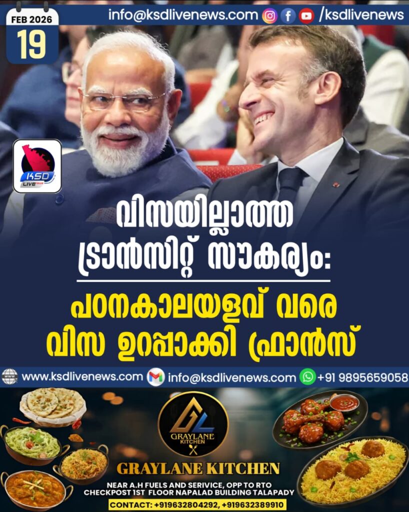 ട്രാൻസിറ്റ് വിസ ആവശ്യമില്ല: ഫ്രഞ്ച് വിമാനത്താവളങ്ങൾ വഴി മറ്റ് രാജ്യങ്ങളിലേക്ക് പോകുന്ന ഇന്ത്യക്കാർക്ക് ഇനി പ്രത്യേക ട്രാൻസിറ്റ് വിസയുടെ ആവശ്യമില്ല.