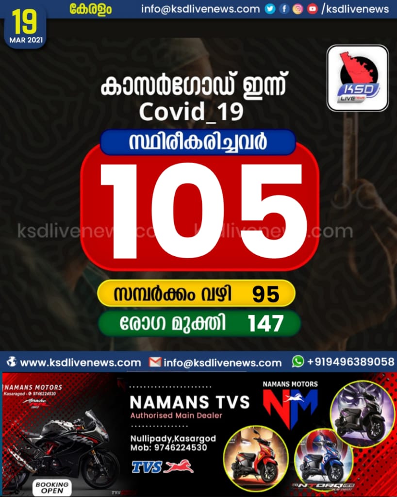 കാസര്കോട് ജില്ലയില് 105 പേര്ക്ക് കോവിഡ്,