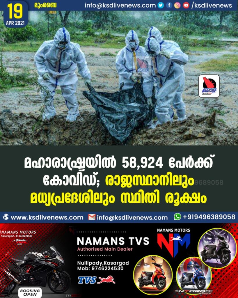മഹാരാഷ്ട്രയില്‍ 58,924 പേര്‍ക്ക് കോവിഡ്; രാജസ്ഥാനിലും മധ്യപ്രദേശിലും സ്ഥിതി രൂക്ഷം