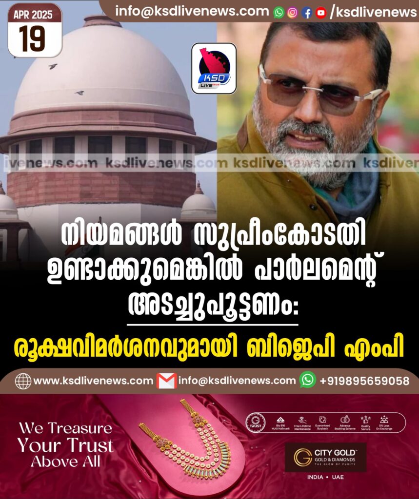 നിയമങ്ങൾ സുപ്രീം കോടതി ഉണ്ടാക്കുമെങ്കില് പാര്ലമെന്റ് അടച്ചുപൂട്ടണം; രൂക്ഷവിമർശനവുമായി ബിജെപി എംപി