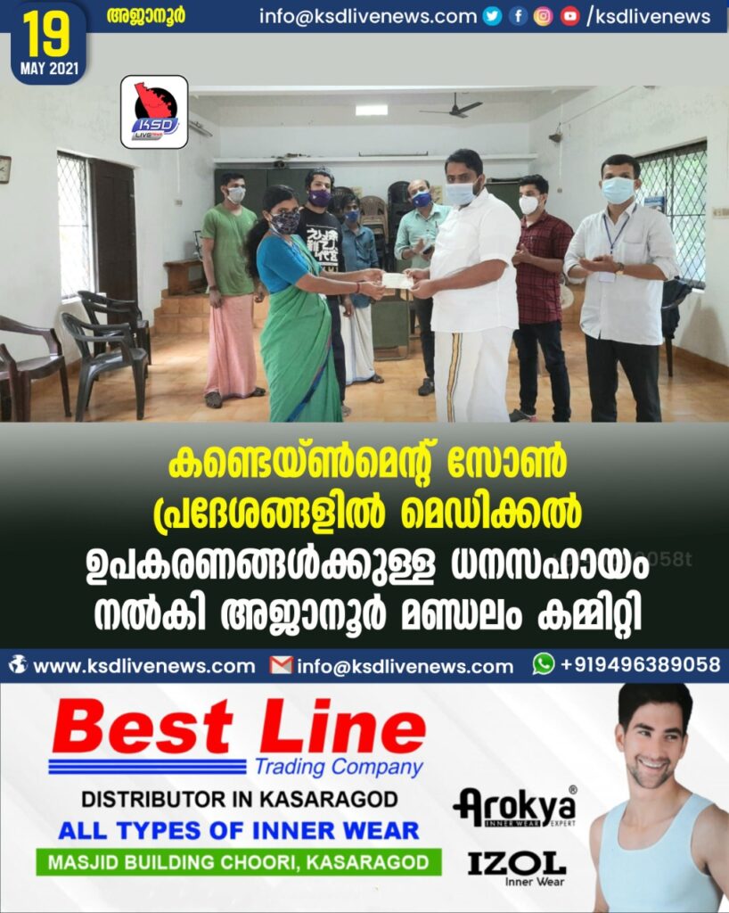 കൺഡെയ്ൻ്റ്മെൻ്റ് സോൺ പ്രദേശങ്ങളിൽ മെഡിക്കൽ ഉപകരണങ്ങൾക്കുള്ള ധനസഹായം നൽകി അജാനൂർ മണ്ഡലം കമ്മിറ്റി