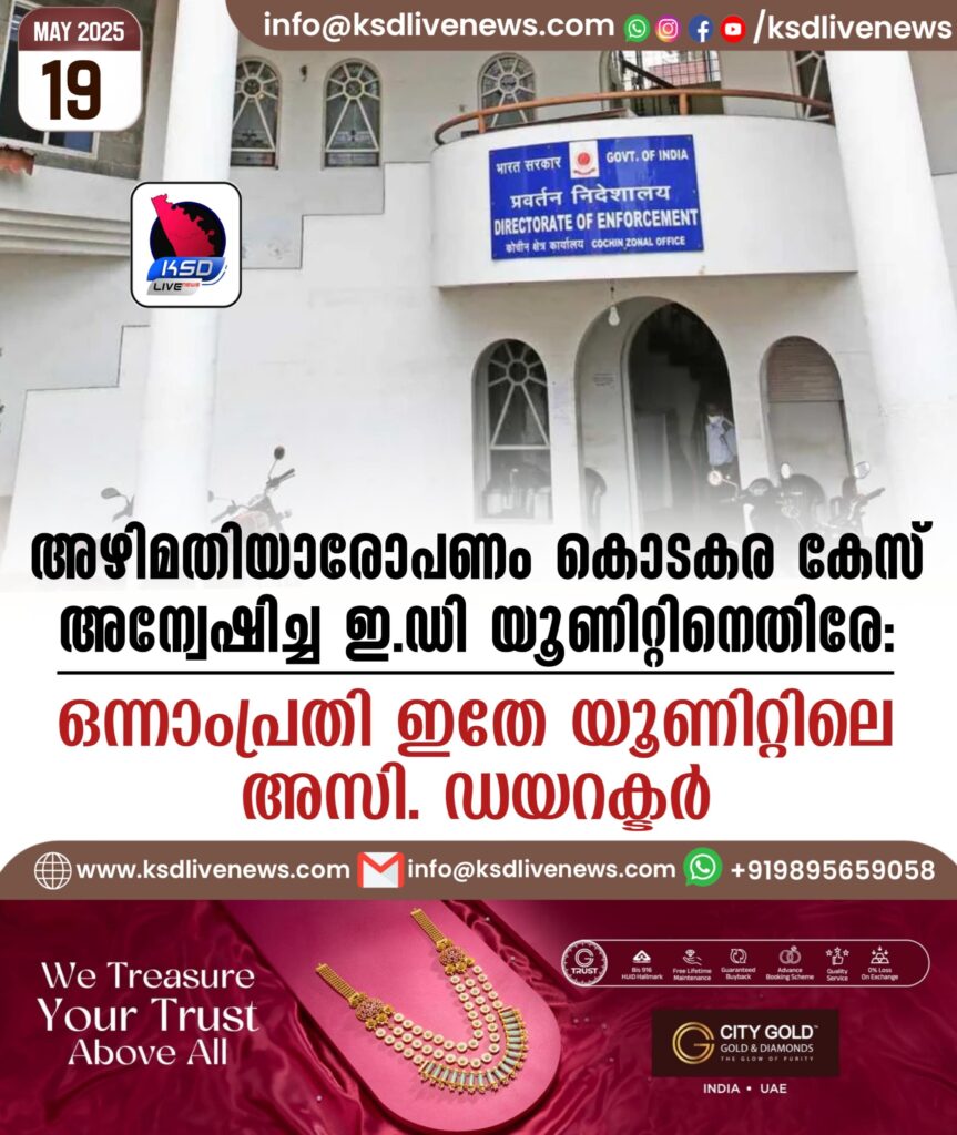 അഴിമതിയാരോപണം കൊടകര കേസ് അന്വേഷിച്ച ഇ.ഡി യൂണിറ്റിനെതിരേ; ഒന്നാംപ്രതി ഇതേ യൂണിറ്റിലെ അസി. ഡയറക്ടർ