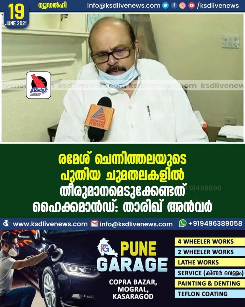 രമേശ് ചെന്നിത്തലയുടെ പുതിയ ചുമതലകളിൽ തീരുമാനമെടുക്കേണ്ടത് ഹൈക്കമാൻഡ്’: താരിഖ് അൻവർ