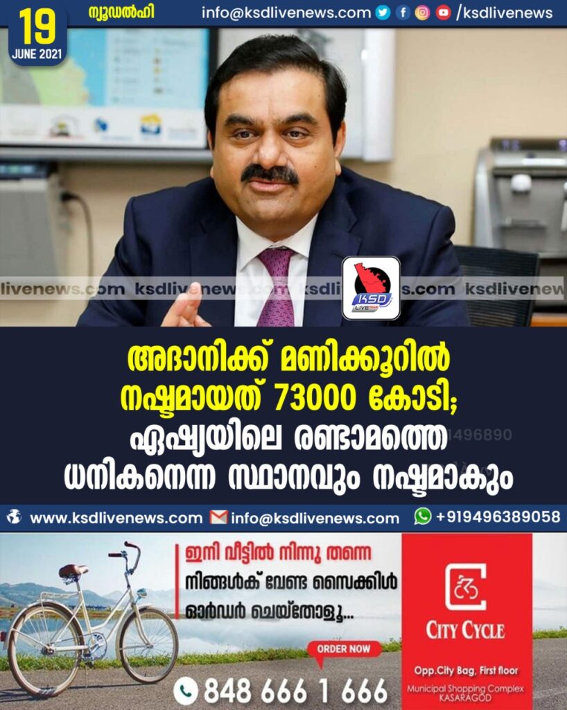 അദാനിക്ക് മണിക്കൂറില്‍ നഷ്ടമായത് 73000 കോടി; ഏഷ്യയിലെ രണ്ടാമത്തെ ധനികനെന്ന സ്ഥാനവും നഷ്ടമാകും