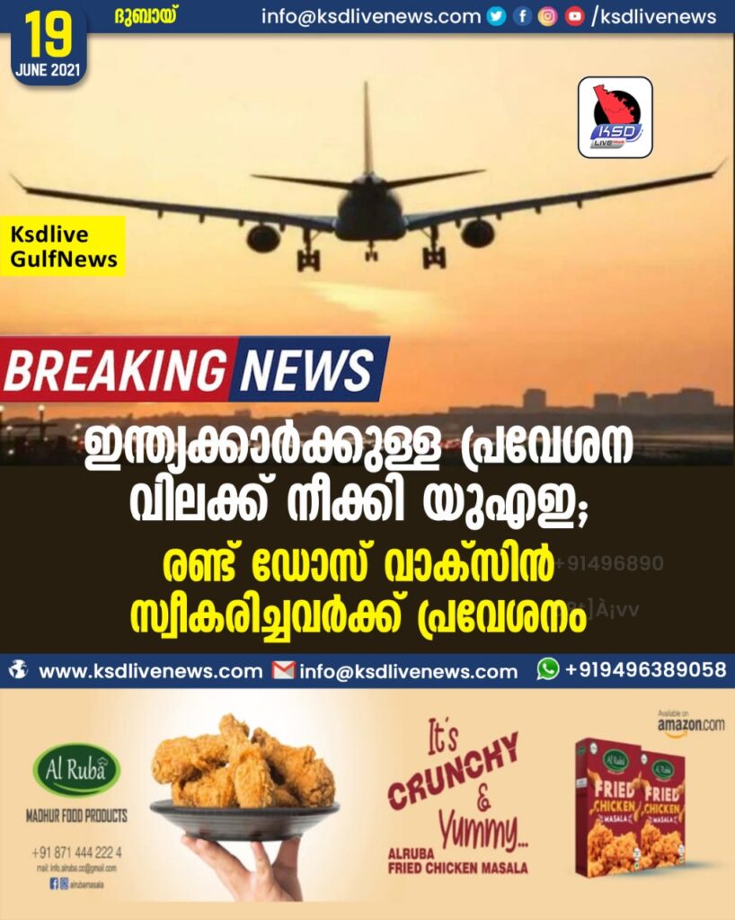 ഇന്ത്യക്കാര്‍ക്കുള്ള വിലക്ക് നീക്കി യുഎഇ; രണ്ട് ഡോസ് വാക്‌സിന്‍ സ്വീകരിച്ചവര്‍ക്ക് പ്രവേശനം