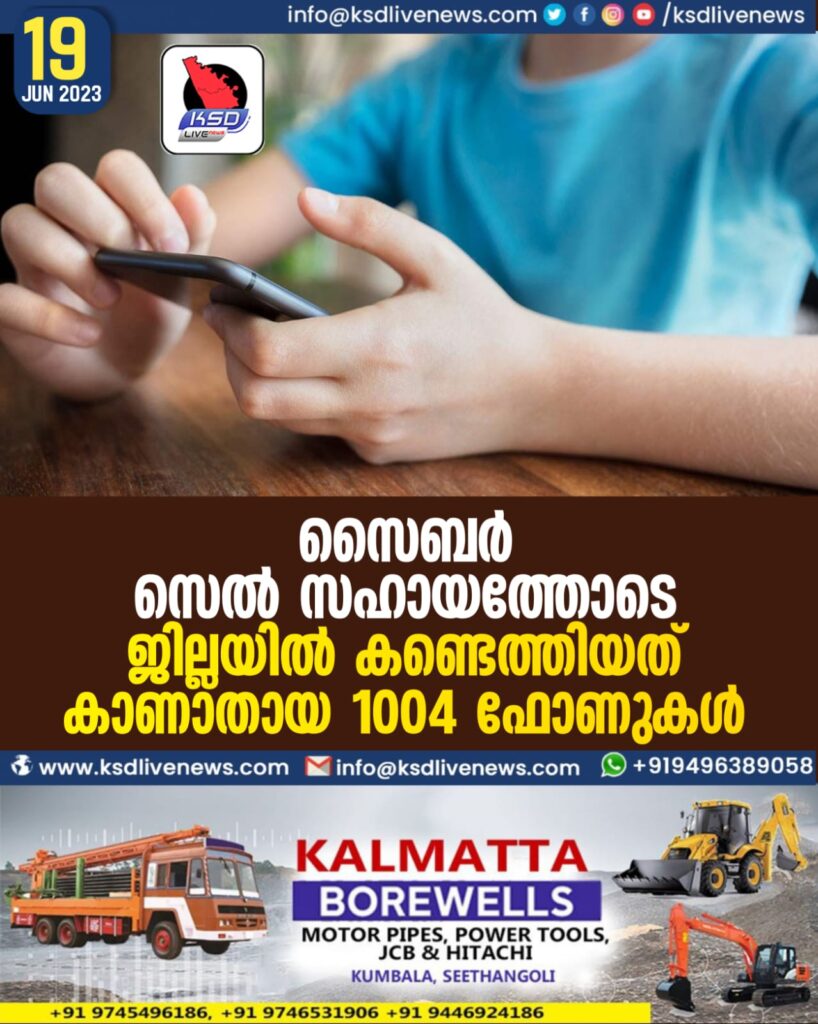 കാസർകോട് ∙ 2022-23 വർഷത്തിൽ കാസർകോട് സൈബർ സെല്ലിന്റെ സഹായത്തോടെ ജില്ലയിലെ വിവിധ പൊലീസ് സ്റ്റേഷനുകളിൽ കണ്ടെത്താനായത് 1004 ഫോണുകൾ. ജില്ലാ പൊലീസ് മേധാവി വൈഭവ് സക്സേനയുടെ നിർദേശപ്രകാരം സൈബർ സെല്ലിന്റെ ചുമതല വഹിക്കുന്ന ഡിവൈഎസ്പി വി.കെ.വിശ്വംഭരൻ നായർ, സൈബർ പൊലീസ് ഇൻസ്പെക്ടർ പി.നാരായണൻ എന്നിവരുടെ മേൽനോട്ടത്തിൽ സൈബർ സെൽ എസ്ഐ പി.കെ.അജിത്ത്, സിപിഒ സി.സജേഷ് എന്നിവരുടെ പരിശ്രമമാണ് ഈ നേട്ടത്തിന് കാരണം. ജില്ലയിലെ വിവിധ സ്റ്റേഷനുകളിലും സൈബർ സെല്ലിലും ലഭിക്കുന്ന പരാതികളിൽ മൊബൈൽ ഫോണിന്റെ ലൊക്കേഷൻ കണ്ടെത്തുന്നതിലും അത് ഉടമയ്ക്ക് വീണ്ടെടുത്ത് നൽകുന്നതിലും മികച്ച പ്രകടനമാണ് സൈബർ സെൽ നടത്തിവരുന്നത്.  ‌